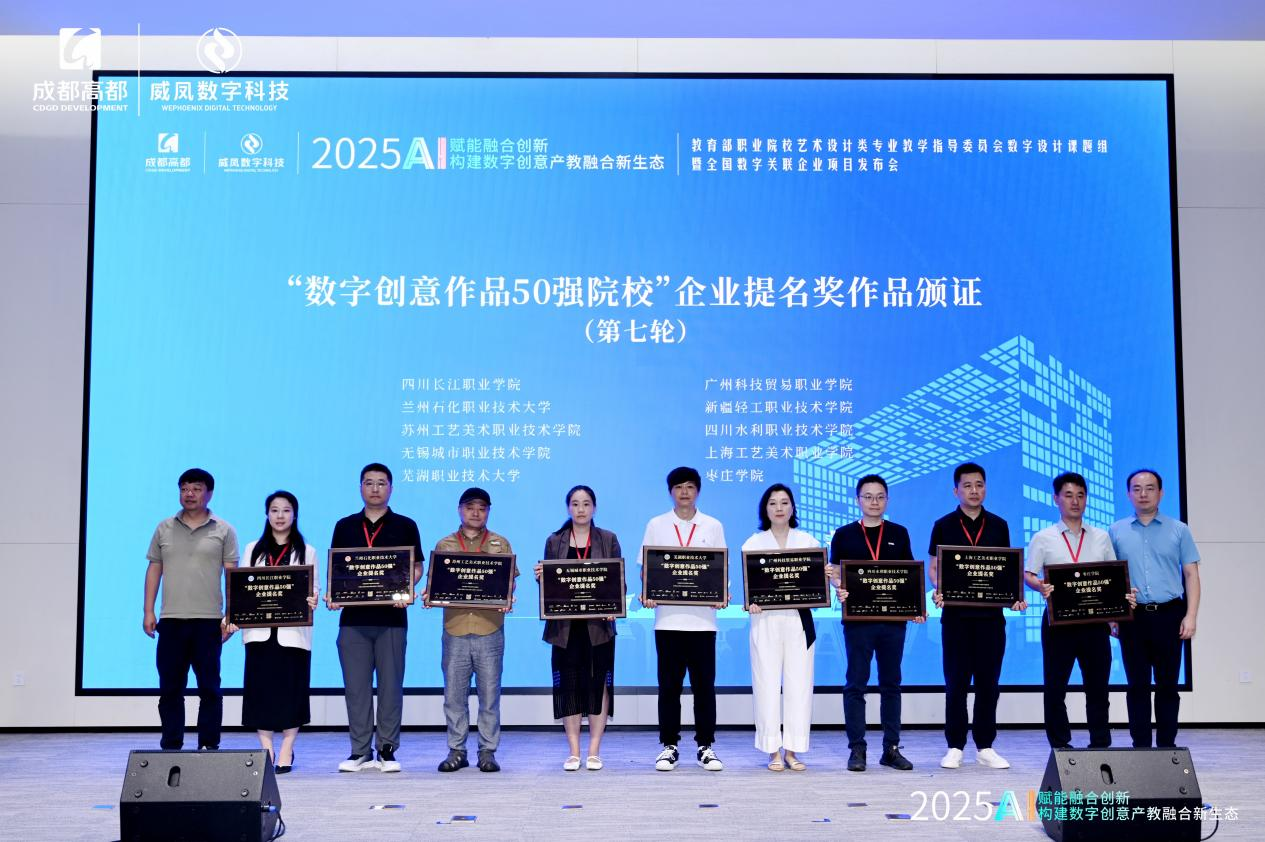 近日,教育部职业院校艺术设计类专业教学指导委员会在成都成功举办数字设计课题组启动暨全国数字关联企业项目发布大会。在此次盛会上,公司凭借在数字设计领域的创新实力与人才培养成果,荣获首批“数字创意作品50强”企业提名奖。