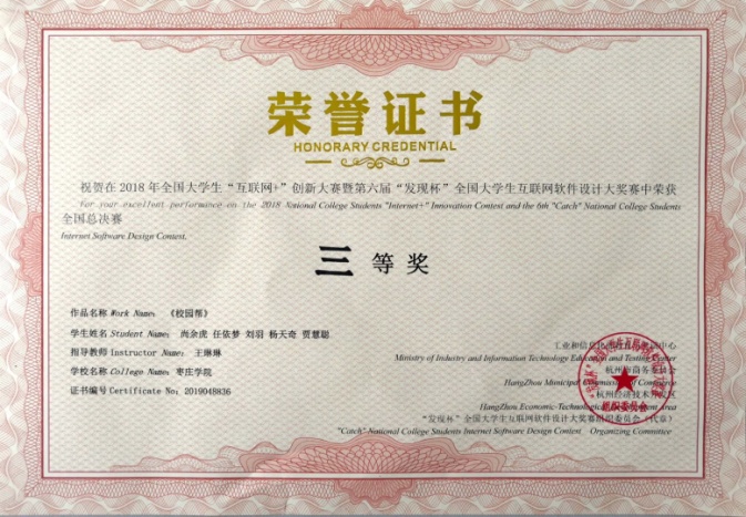 经过初赛严苛选拔,互联网应用开发组:由黄婕、王艳秋、王琳琳老师指导的团队荣获华东赛区二等奖5项、三等奖1项;艺术设计组:由李旭宏、胡华、李中强老师指导的团队荣获华东赛区一等奖、二等奖、三等奖各一项。同时,由李旭宏、黄婕、王艳秋、王琳琳指导的共四支队伍入围全国总决赛的150支队伍。