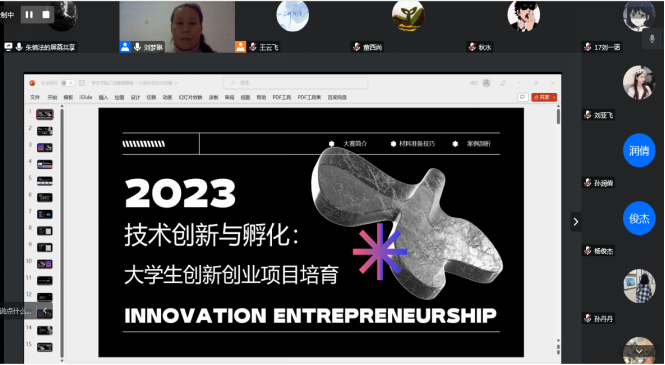 朱慎法从“三创赛”大赛简介,材料分析技巧、案例剖析三方面做了详细的解读,并进一步从学科竞赛特点、商业计划书、现场答辩等方面强调了挑战赛中应注意的事项,指出项目团队多在“想法立意”“项目可落地性”“团队质量发展”“文案输出”等方面下功夫。