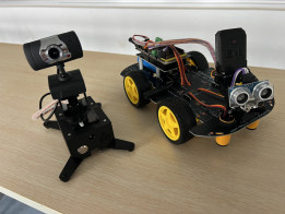 单承刚老师向同学们讲解了树莓派OpenCV机器视觉开发套件的基础知识,结合深度学习和计算机视觉技术介绍了智能视觉系统,并带领同学们基于树莓派AI智能视觉云台实现人脸识别、边沿检测、增强现实、颜色识别、手势识别等功能。最后,物联网协会杨与同同学为同学们展示了STM32智能小车的基本功能。