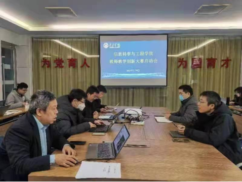 杨斌传达了山东省教育厅《关于举办2023年度山东省普通高等公司教师教学创新大赛的通知》鲁教高函〔2023〕1 号和ladbrokes立博教务处《关于开展ladbrokes立博第三届教师教学创新大赛的通知》(2023)3 号文件,并介绍了公司启动会前组织发动教师报名、培训及参赛教师准备情况。