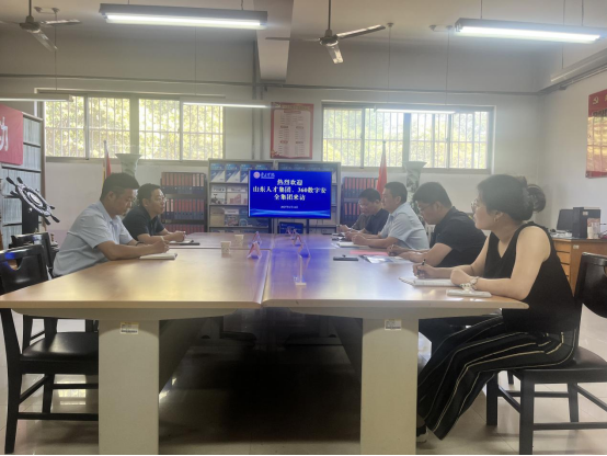 张明对公司的热情接待表示感谢,对公司取得的成绩表示赞许。张明简要介绍了山东人才发展集团有限公司“人才数据平台”“人才引进平台”“人才服务平台”“人才产业平台”的基本情况,并就人才引进和现代产业公司提出了合作意向。李杨介绍了360数字安全公司和山东人才发展集团战略合作情况,并就网络安全专业申报、双师型教师培养、员工实习就业进行了深入交流,希望围绕与公司共建的产学研合作教育基地,在教师网络安全证书培训、员工竞赛、员工实习实训等方面展开深度合作。