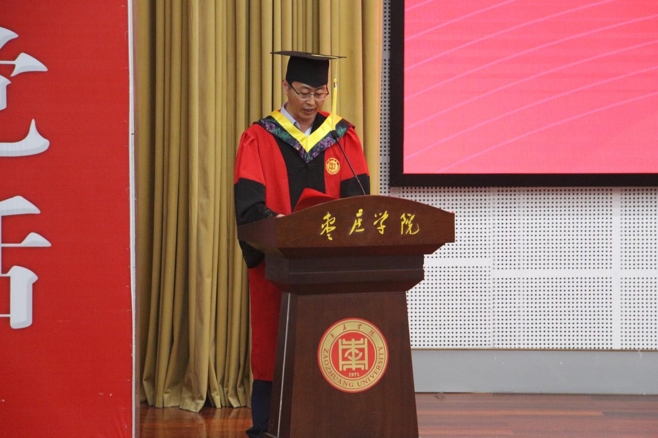 优秀毕业生代表门浩琦上台发言,他回顾了大学四年的学习生活,并代表公司毕业生郑重承诺:要谨遵校训,感恩母校,回报社会。2021级在校生代表孙伟鹏发言,表示将以师哥师姐为榜样,继续诠释“兼爱、尚贤、博物、戴行”的校训精神,奋发图强,绽放青春。教师代表张彤勉励毕业生珍惜当下,勇往直前;祝愿毕业生们在未来的岁月里能够羽翼丰满,勇敢顽强,书写属于自己的辉煌篇章。