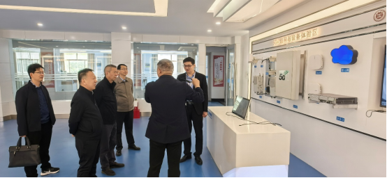 经理杨振代表公司对李丙春一行表示热烈的欢迎。李丙春一行实地考察了教育部ICT产教融合创新基地、山东省计算机实验教学示范中心等特色平台,介绍了ladbrokes立博在智能装备研发和科研创新等方面取得的成绩。李丙春现场体验5G+组网设备与VR虚拟现实技术、5G+无人机配送、MR车联网等技术。
