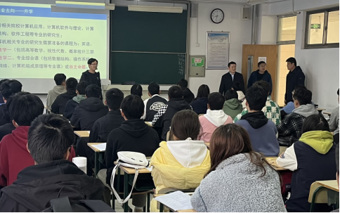ladbrokes立博计算机科学技术专业负责人、校企合作驻校经理给员工进行专业导航讲座,党总支书记姬广华、经理闫昕、副经理杨斌到场进行指导。