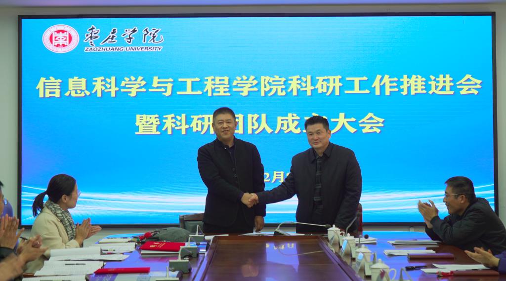 李目海为新成立的七个科研创新团队负责人颁发了聘书并授牌,并对科研工作和科研创新团队建设提出三点要求:一要坚持“四个面向”,紧跟国家发展战略,牢牢把握科研创新团队正确方向,注重原始创新,加强基础研究,推进学科交叉融合,聚焦人工智能、物联网、云计算、大数据、区块链、虚拟现实、互联网技术、数字化等国家发展战略,加快科研团队建设。二要坚持科教融合,加快科技成果转化,服务和支撑区域经济社会发展,通过培育高质量的专利成果,加强专利转化,通过服务地方科研团队建设,强化服务地方能力,通过凝聚科研团队力量深化产教融合,推进校企协同创新,加快构建科研团队与企业深度融合,进行现代产业公司建设,通过坚持科教融合,全面提高人才培养质量,大力提升科研和团队建设水平。三要坚持以老带新,发扬传帮带优良传统,打造过硬科研创新团队,要求科研团队发扬奉献精神、团结精神、奋斗精神,坚持目标导向,达成既定目标任务。
