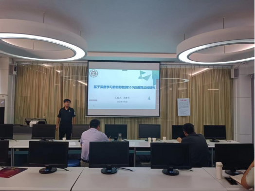 机器学习科研团队的燕孝飞老师做了题为《基于深度学习的目标检测SSD改进算法的研究》的学术报告。报告对SSD算法原理进行介绍,在分析其优点与不足的基础上,介绍一种基于位置预测与类别预测分离的改进算法DF-SSD,该算法分离了位置预测与类别预测使用的特征图,增加了丰富的细节与定位信息,对提升模型检测性能效果显著。