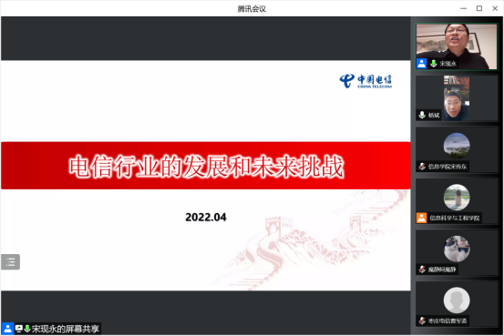 宋现永以电信行业发展以及在国民经济发展中的地位,5G、大数据、云计算、人工智能等热点应用,枣庄电信服务地方经济发展和数字化转型简介,电信行业需求专业人才等方面做了深入浅出的阐述。会后,宋现永在线上与师生进行深入交流。
