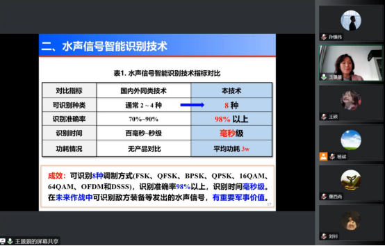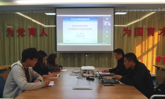 在高效可靠水声通信技术方面,王景景教授也介绍了其背景与难题,以及对应的解决方案,其研制的智能水声通信机已实现5km距离下10kb/s的高效可靠传输。会后,与会教师与王景景教授进行了深入交流。