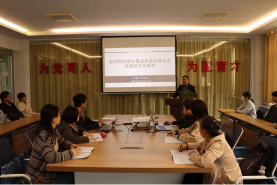 院智能感知科研创新团队副教授许太安老师做了题为《面向网络感知覆盖质量的移动充电调度优化研究》的学术报告。报告针对无线可充电传感器网络(WRSN)的网络QSC下降问题,提出了一种基于移动充电器(MC)的新型能量补充方法。阐述了移动充电序列调度的优化问题网络MSSQ,并提出一种改进的量子行为粒子群优化(IQPSO)算法。由于量子空间中势能的吸引,该算法将自适应地迭代调整收缩-膨胀系数,从而得到全局最优解用于移动充电序列。通过大量仿真结果证明IQPSO在大规模网络QSC方面的优越性。
