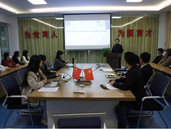 院机器学习与粒度计算科研创新团队燕孝飞教授做了题为《RFB-SSD-MASK:一种复杂场景下的多尺度遮挡人脸识别算法》的学术报告。针对复杂场景下遮挡人脸的多样性、尺寸不一等问题,提出一种遮挡人脸识别算法RFB-SSD-MASK。该算法基于SSD算法,采用RFB模块,利用多分支结构增强网络特征表达能力,通过引入改进注意力机制,增强特征图的表达能力,最后通过自适应特征融合,构建RFB-SSD-MASK遮挡人脸识别模型。实验结果证明,该算法对复杂场景下多尺度遮挡人脸的检测有较好的识别效果。