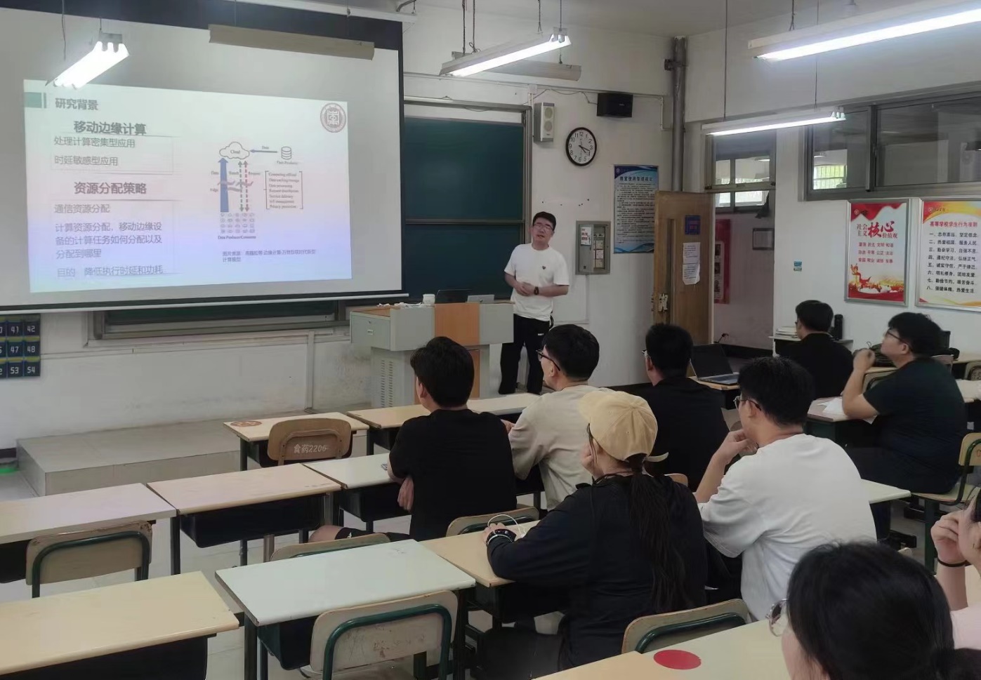 郑涛老师做了题为“基于改进遗传算法具有依赖关系的任务卸载策略”的学术报告。报告针对移动边缘计算卸载过程中服务器利用率低、时延过高等问题,设计并实现了基于改进遗传算法的多服务器协同卸载策略。仿真结果表明,所提方法能够充分考虑任务内部依赖关系, 具有较低的时延和较高的服务器利用率。