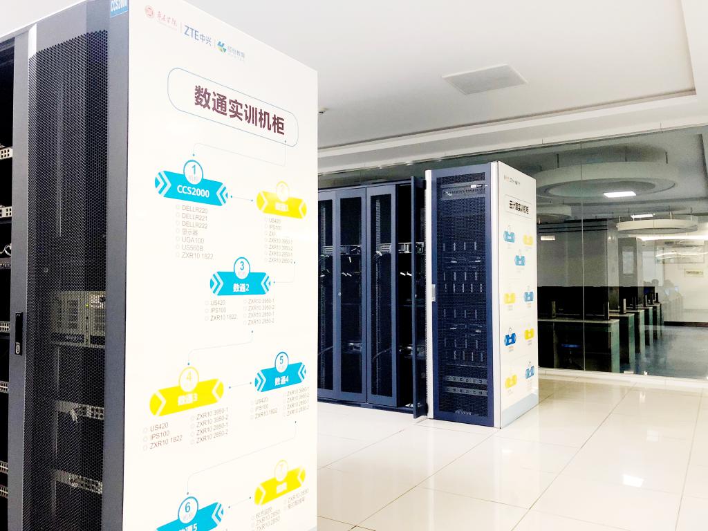 计算机实验教学中心坐落于市中校区墨子楼一、二、四、五楼层和新校区豁然楼C区三层,拥有1500余台计算机,20余台浪潮、华为高性能服务器,云平台机房配备华为精密空调、USG 9506防火墙、S12708核心交换、光纤交换机等设备。其中墨子楼一层和豁然楼三层属于基础实验室,主要承担公司计算机专业课程和全校计算机公共课程,也担负着公司各种计算机考试、培训和服务地方的重任。墨子楼二层是中兴通讯公司实验室,包括光通信实训室、LTE实训室、云计算实训室、承载与安全实训室、工程施工实训室共计5个实训室,为中兴通讯公司(校企合作)员工提供云计算、移动通信(LTE)、光通信和数据通信四个实训平台,支撑4G/5G移动通信技术、数据通信技术、宽带接入技术、光传输技术、云存储、云安全和虚拟化等专业课教学。墨子楼四、五层是专业实验室,包括感知与数据理解实验室、云平台实验室两个科研实验室,还有计算机组成原理与单片机实验室、网络安全实验室、网络协议实验室、虚拟现实实验室等其它9个专业实验室,为计算机、信息科学类专业课程提供实验教学服务。