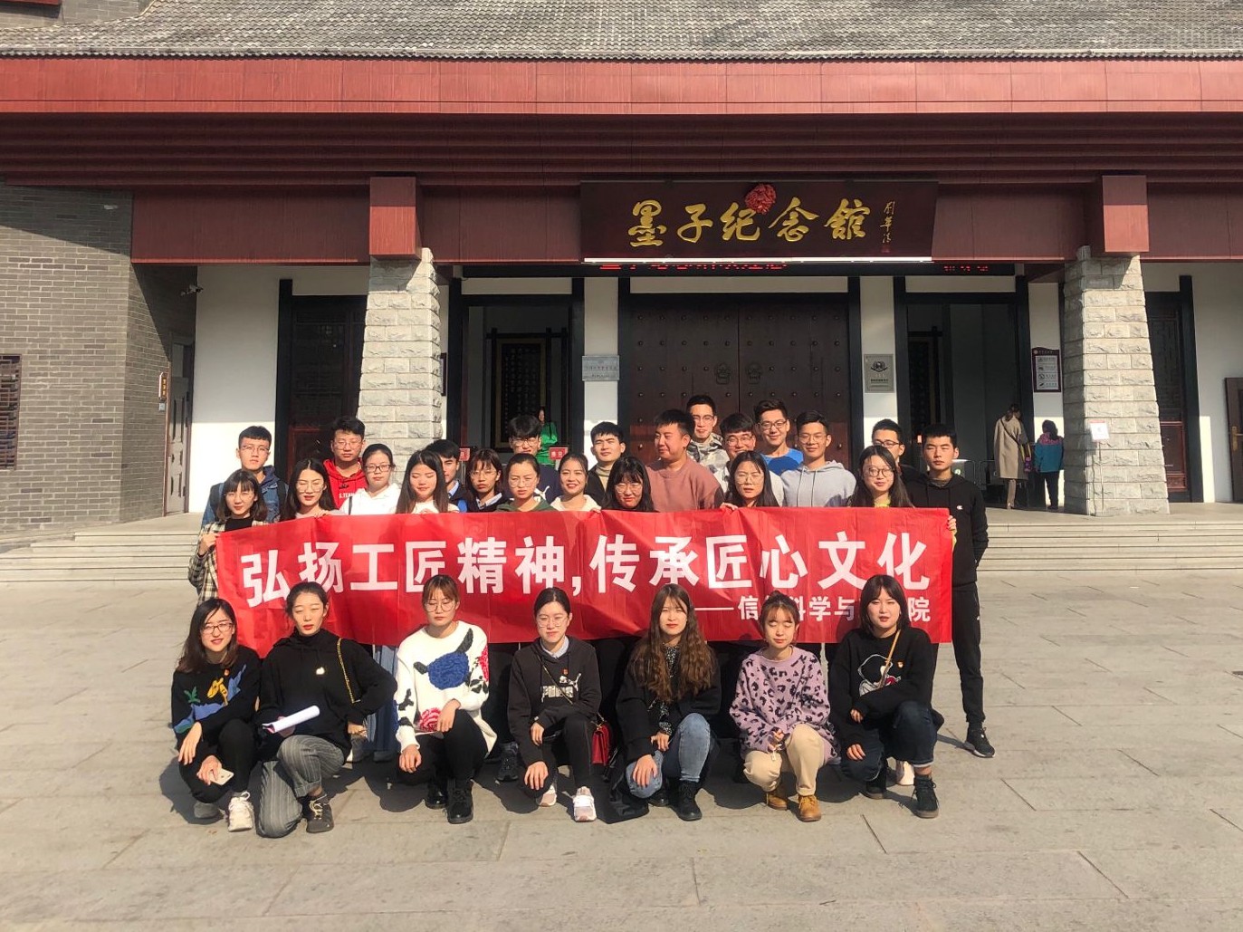 为进一步筑牢理想信念,深入推进“不忘初心、牢记使命”主题教育,结合公司专业认证工作,2019年11月16日上午,信息科学与工程公司组织师生党员和入党积极分子共36人,赴滕州墨子纪念馆,鲁班纪念馆参观学习,体验中华优秀文化,弘扬工匠精神,传承匠心文化。