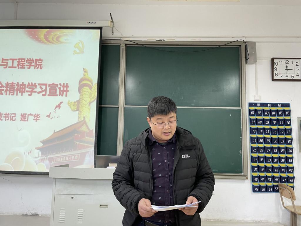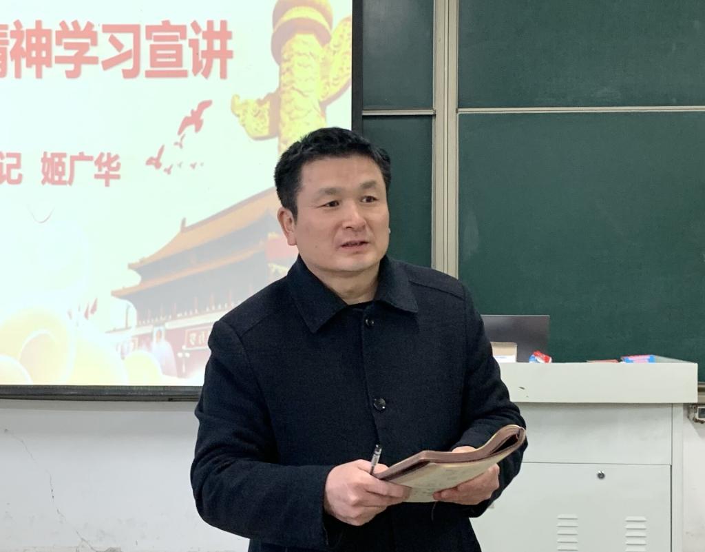 姬广华在宣讲中指出,要深入学习领会全会精神,进一步增强“四个意识”、坚定“四个自信”、做到“两个维护”。作为一名党员,要始终对党忠诚,忠诚于祖国,忠诚于人民,不忘初心、牢记使命,发挥好党员的先锋作用。同时要学好践行好“十个坚持”的宝贵经验,牢牢把握稳中求进、守正创新的工作基调,切实履行“举旗帜、聚民心、育新人、兴文化、展形象”的使命任务,唱响主旋律、弘扬正能量,不断巩固当前的良好态势。精心培养和组建一支会做思想政治工作的教师队伍,把思想政治工作做到日常,做到课堂,把党对教育的领导落到实处,落到细处。