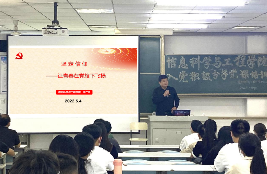 在中国共青团成立100周年和“五四”青年节到来之际,5月4日下午,公司党总支书记姬广华,以“坚定信念——让青春在党旗下飞扬”为题,在理工楼2106教室为公司入党积极分子讲授专题党课。
