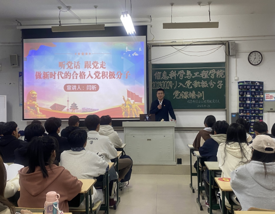 闫昕以《听党话,跟党走,做新时代的合格入党积极分子》为题,从“学习贯彻习近平新时代中国特色社会主义思想;深刻领悟习近平总书记对青年的谆谆教诲;争做有理想、敢担当、能吃苦、肯奋斗的新时代合格入党积极分子”三个方面对入党积极分子进行了党课培训。闫昕强调,作为入党积极分子,要把深入学习贯彻习近平新时代中国特色社会主义思想作为一门必修课,从习近平总书记对青年的敦敦教诲中汲取前行力量,并坚定理想信念,争做有理想的好青年,要迎难而上,争做敢担当的好青年,要脚踏实地,争做能吃苦的好青年,要锐意进取,争做肯奋斗的好青年。