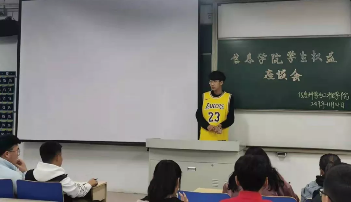 首先,员工会副主席邹越向在场同学介绍了权益部的相关职责,同时也点出了老员工权益的重要性,并希望同学们能积极提出问题及改进措施。随后,各个班的同学们从生活、学习、管理等方面提出了众多重要的问题和宝贵的意见,积极的去维护自己的相关权益。最后,邹越对同学们的问题做出总结,女工生活部部长表示,对同学们的问题已做出记录,并承诺由权益部代表将问题上报。