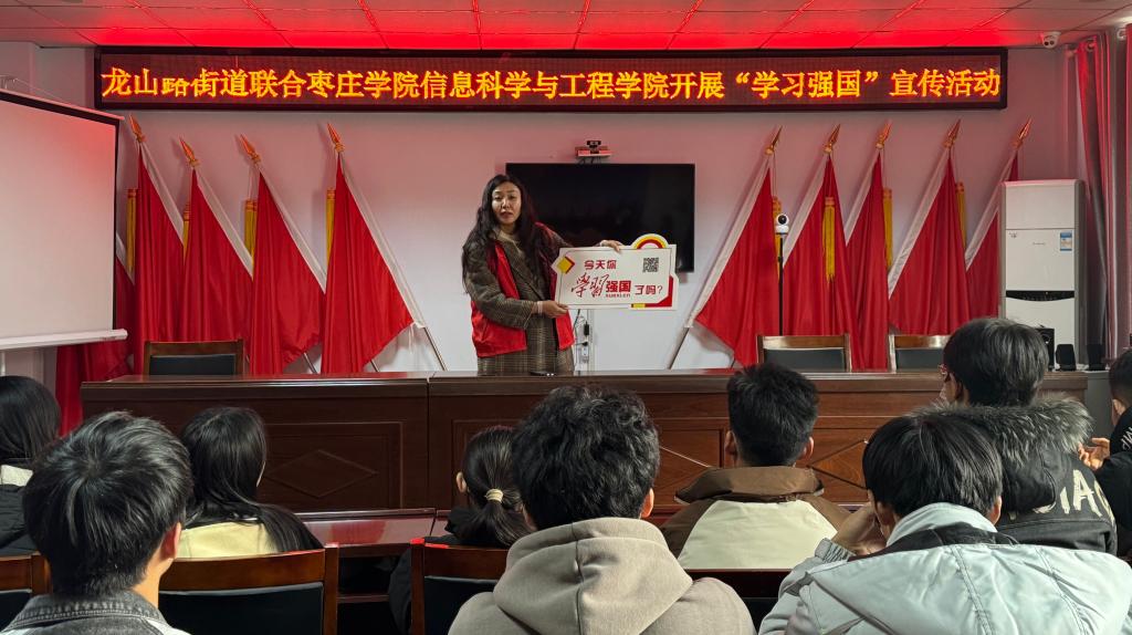 在龙山路街道道南社区党群服务中心,志愿者们与社区负责人联合开展了“学习强国”宣传活动,引导社区居民和同学们利用“学习强国”平台在线学习,鼓励社区居民和同学们积极参与其中,获取更多知识,提高自身素质和能力水平。