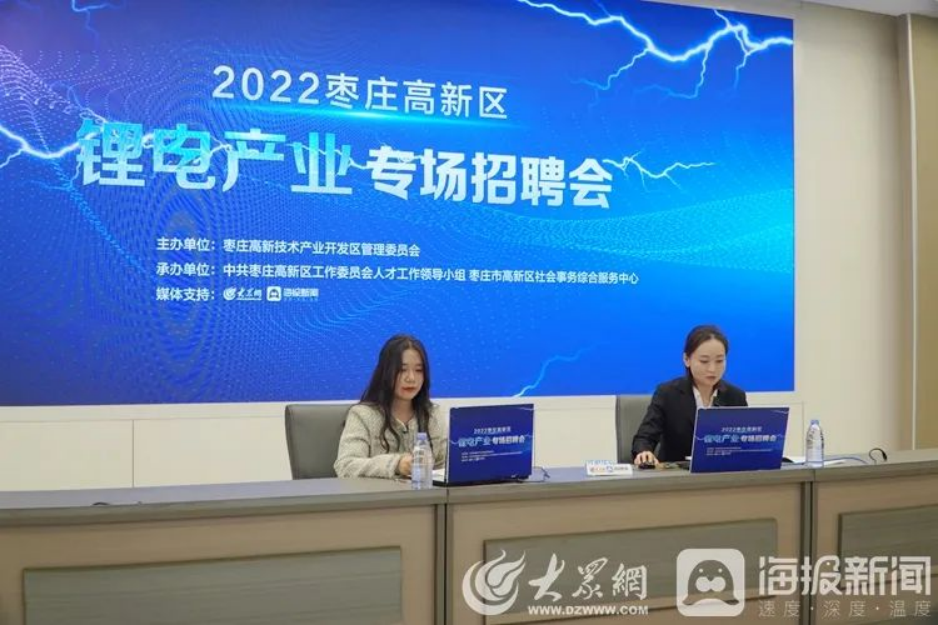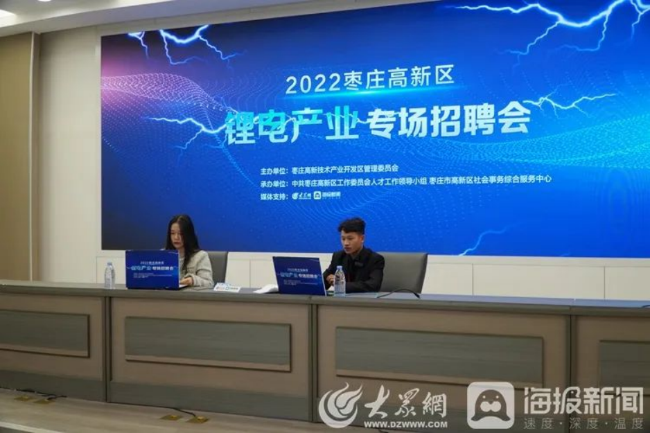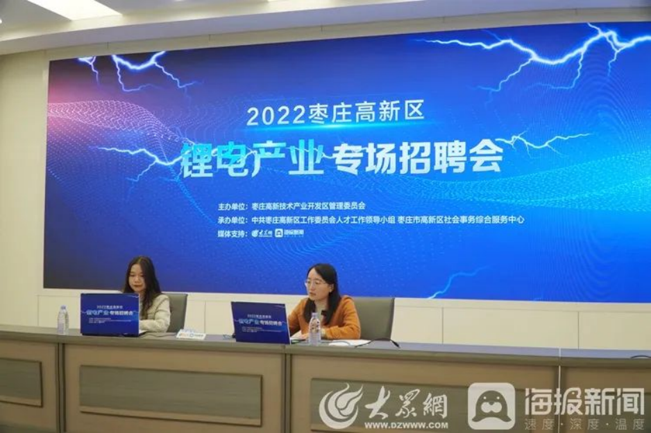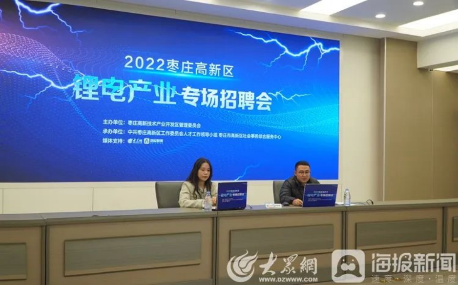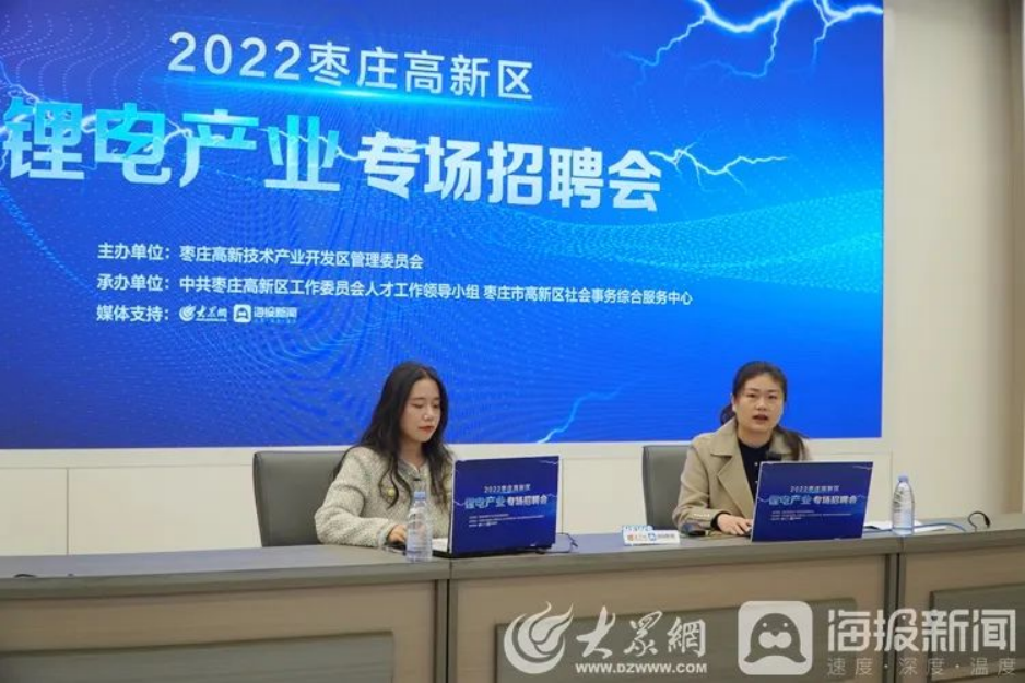 12月9日上午,2022枣庄高新区锂电产业专场招聘会在高新区管委会成功举办。本次活动由枣庄高新技术产业开发区管理委员会主办,中共枣庄高新区工作委员会人才工作领导小组、枣庄市高新区社会事务综合服务中心承办。旨在助推枣庄高新区招才引智工作高质量开展,努力为“工业强市、产业兴市”三年攻坚突破行动提供坚实人才支撑,搭建联通枣庄高新区锂电企业与各类人才的沟通交流平台。