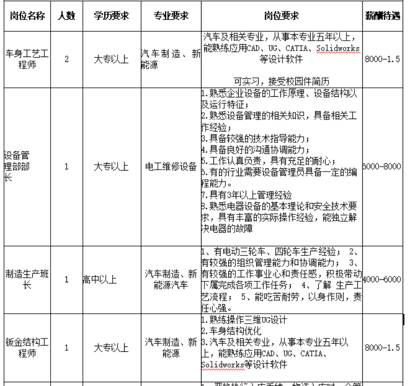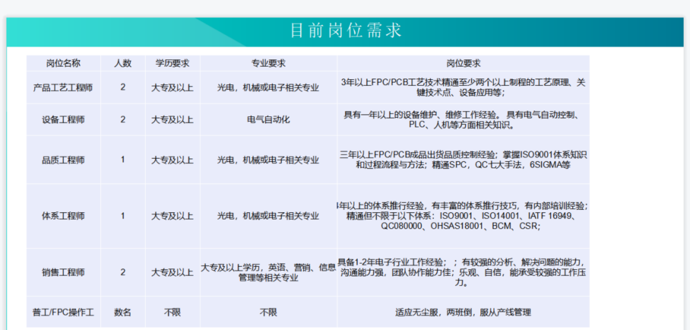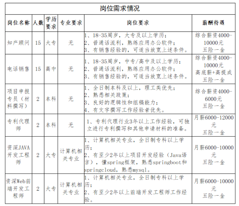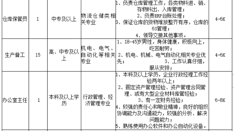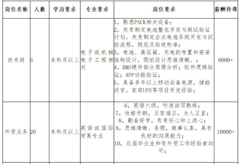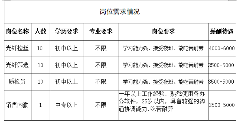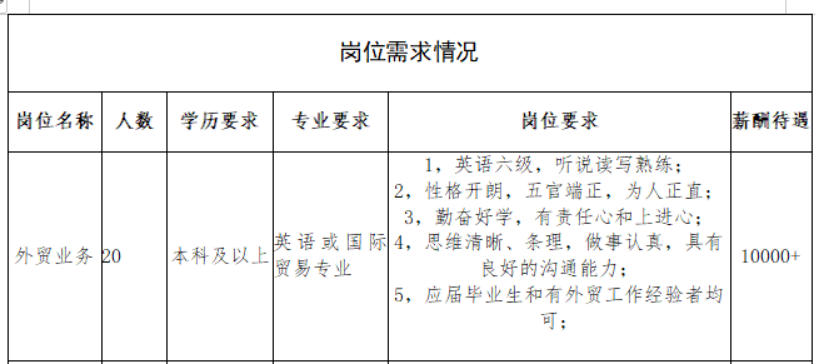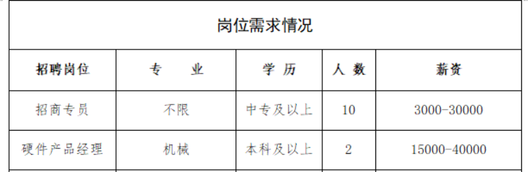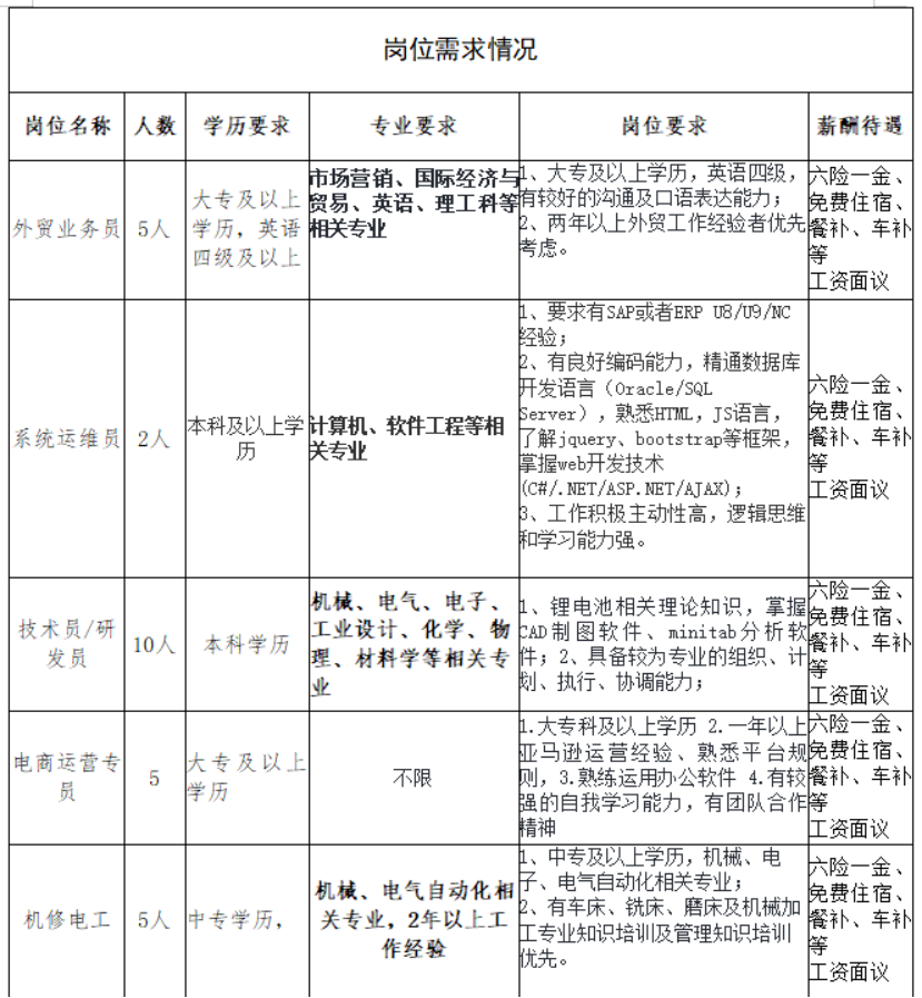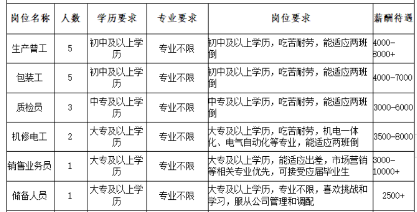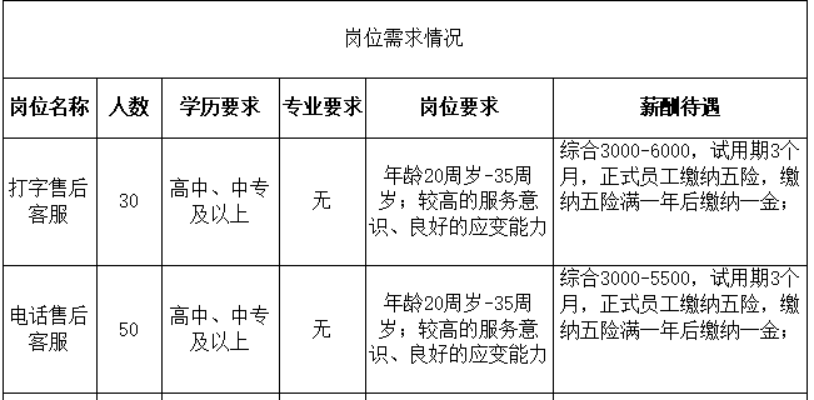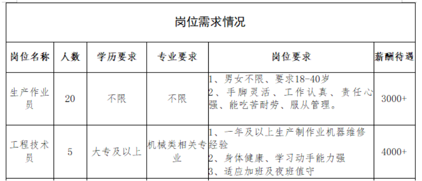 活动现场共有5家企业参与线上直播招聘,另有15家企业书面提交招聘信息,相关岗位招聘信息汇总如下: