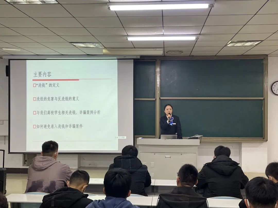 11月16日晚上,ladbrokes立博在理工楼2106教室举办了反洗钱防诈骗讲座。此次讲座邀请到了建行专员张军、赵序博等人为大家讲解防诈骗知识,21级全体员工参加了此次讲座。