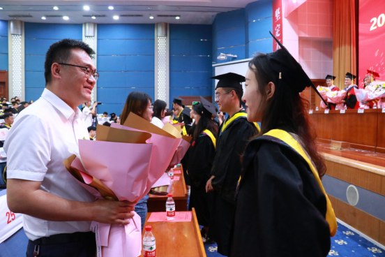 典礼上,17名毕业生代表向教师代表敬献鲜花,深切表达了对母校的深深眷恋、对师长的无限感激以及对校园生活的依依不舍。