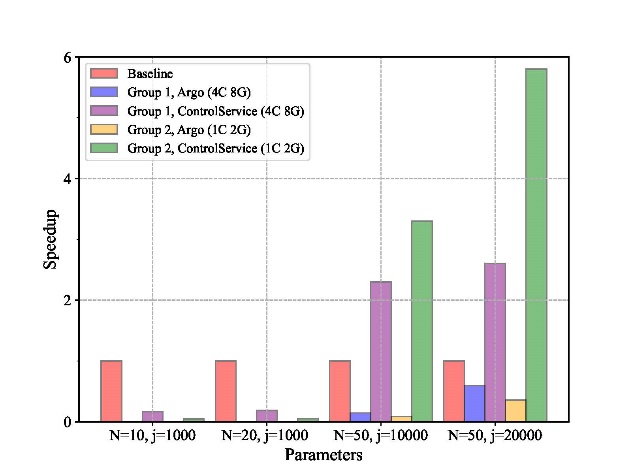 该方案能够将控制算法作为云工作流服务提供,利用定制的工作流引擎实现云工作流服务在云基础设施上的容器化执行。方案解决了控制算法的云工作流抽象表示问题,给出工作流的云服务定义,同时设计了云工作流调度引擎,解决了工作流云服务的交付和容器化调度执行问题。在实验中,以子空间辨识方法为例讨论了云服务表示形式和容器化实现过程。实验结果表明,与基线相比,ControlService在计算时间、递减百分比和加速比方面具有显著的性能优势。