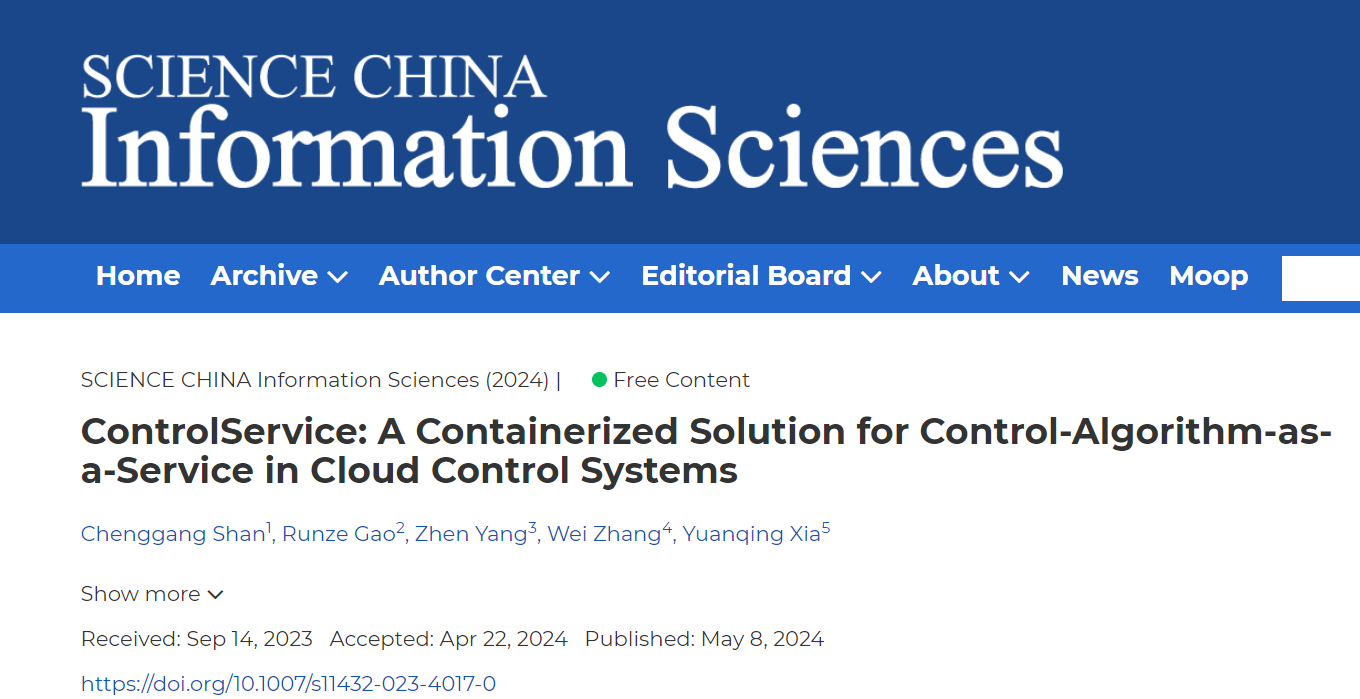 近日,公司智能计算与控制科研团队单承刚博士在云控制领域取得重要进展,提出了一种面向云控制系统的控制算法即服务的容器化解决方案(ControlService)。研究成果以“ControlService: A Containerized Solution for Control-Algorithm-as-a-Service in Cloud Control Systems”为题发表在《SCIENCE CHINA Information Sciences》上。