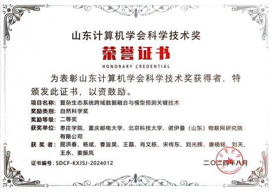 近日,山东计算机学会2024年度科学技术奖评审结果公示,ladbrokes立博屈洪春教授团队牵头完成的“复杂生态系统跨域数据融合与模型预测关键技术”荣获得自然科学奖二等奖。