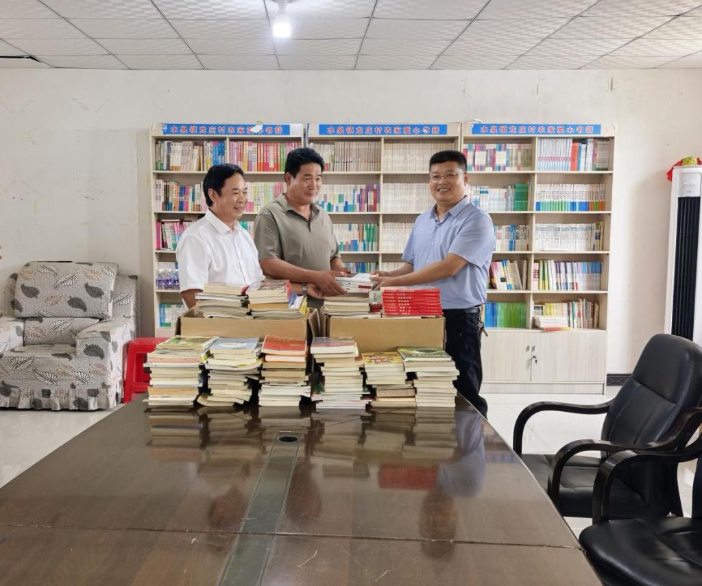 姬广华代表公司向下龙庄村委会捐赠了涵盖党建、农业生产、科技等类别的书籍四百多本,会后全体人员共同参观了书法实践基地、文化巷道等文化设施。