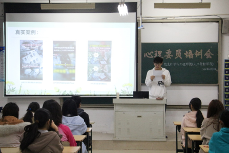 培训会上,桑佳妮围绕心理委员的基本工作职责、常见心理问题的识别和应对、心理危机的预防与干预等内容进行讲解。她引导同学们认识到,心理委员不仅是班级心理健康的守护者,更是公司心理健康教育工作的桥梁和纽带,需要定期观察和了解班级同学的心理动态,及时发现有心理困扰或问题的同学,以便开展有效帮助。