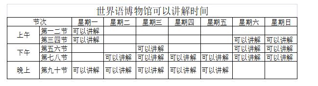 五、参观预约联系人:张一帆 联系电话:63601;世界语博物馆可以安排讲解员时间如下: